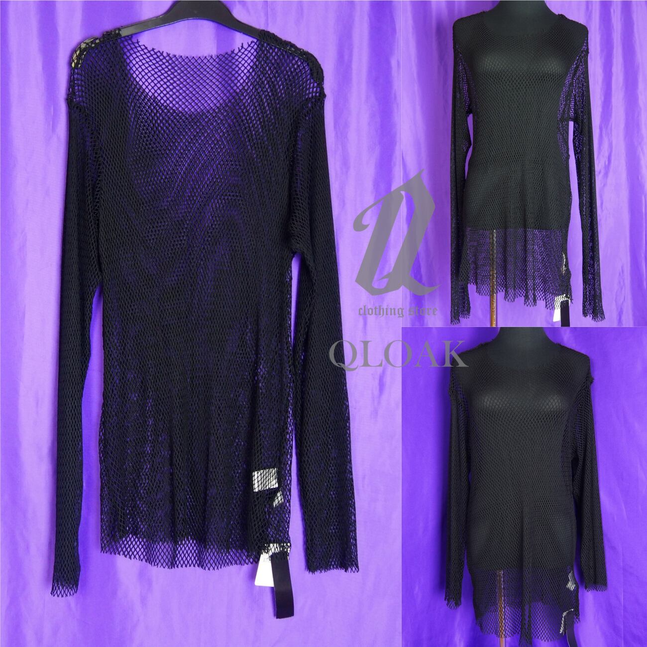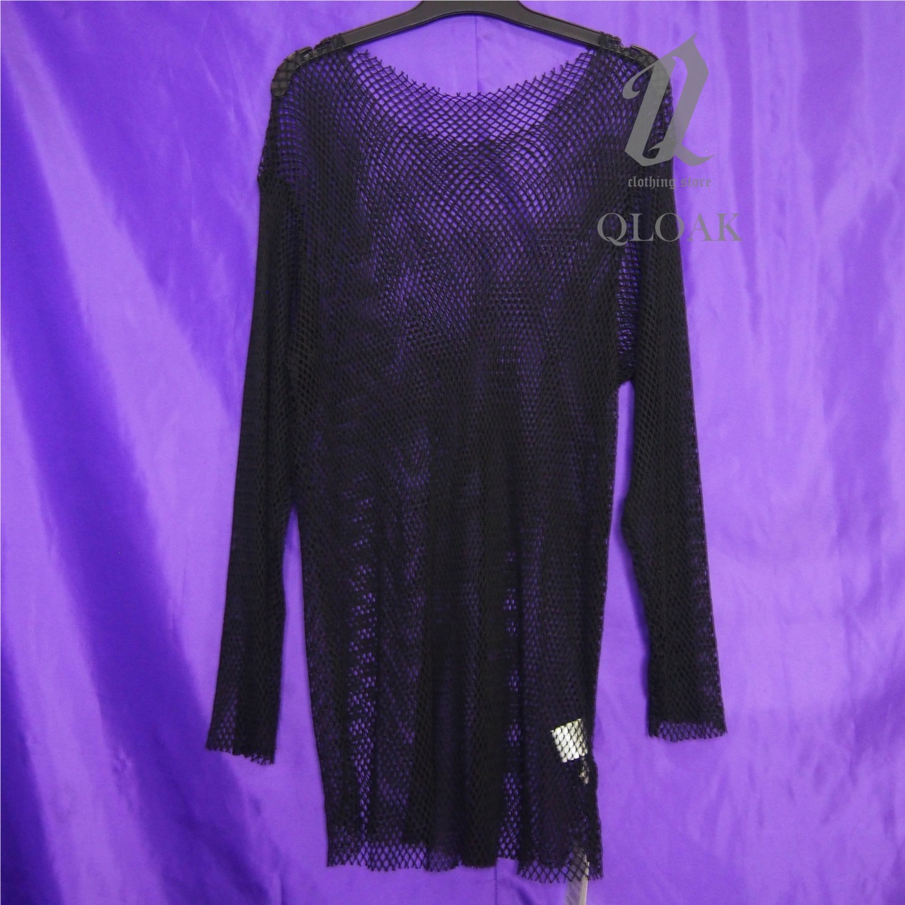 ロングアーム 網トップス フィッシュネット 2size 大きいサイズ ユニセックス ビッグシルエット オーバーサイズ ロングアーム ドロップショルダー モノトーン ブラックコーデ 黒コーデ モード 系 ゴス ゴシック ゴスロリ パンク ロック V 系 韓国ファッション ストリート系 原宿 qto110015
