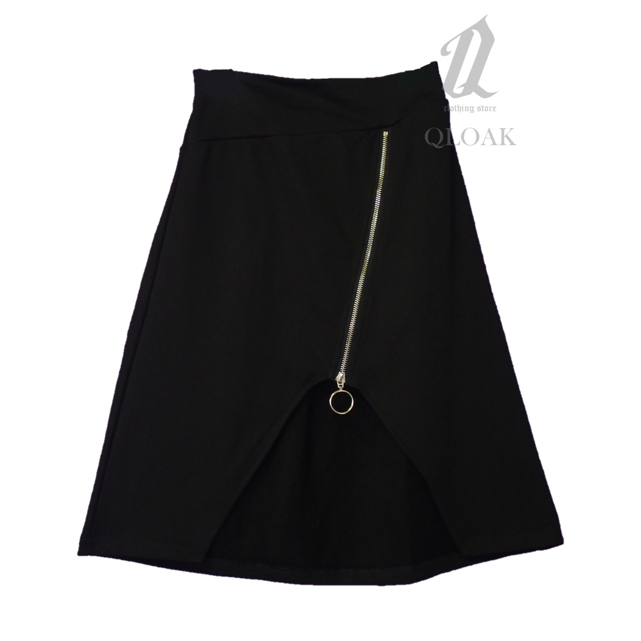 斜め リング ジップ スウェット スカート qbo110024 モノトーン ブラックコーデ 黒コーデ モード 系 ゴス ゴシック ゴスロリ パンク ロック V 系 韓国ファッション ストリート系 原宿 個性的 drughoney ドラッグハニー drug honey