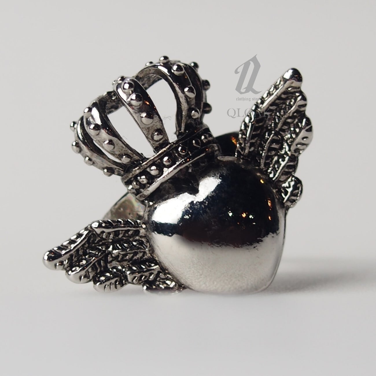 王冠 ウイングハート リング qac110071 エンジェルハート 天使 韓国製 韓国アクセサリー モノトーン ブラックコーデ 黒コーデ モード 系 ゴス ゴシック ゴスロリ パンク ロック V 系 韓国ファッション ストリート系 原宿 個性的