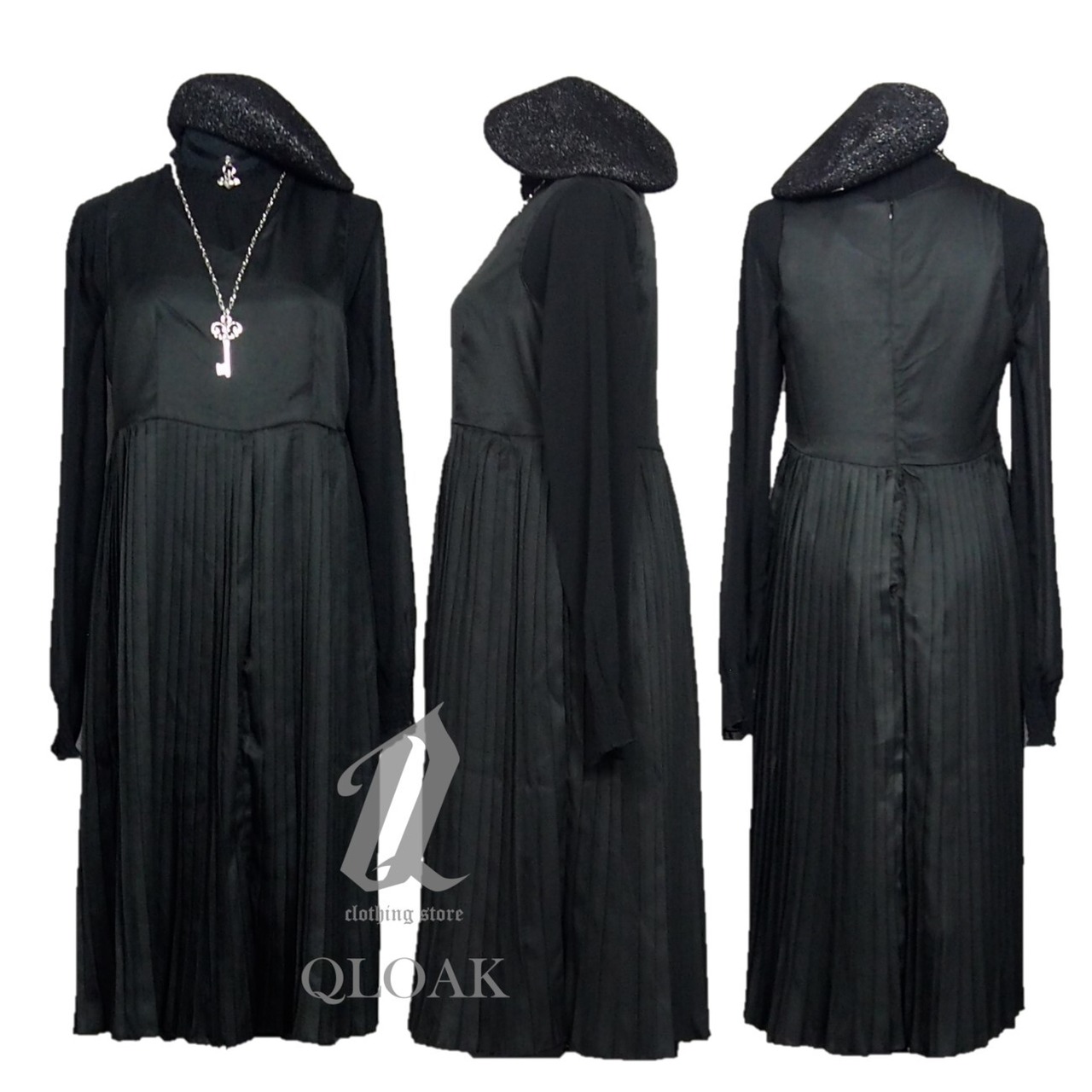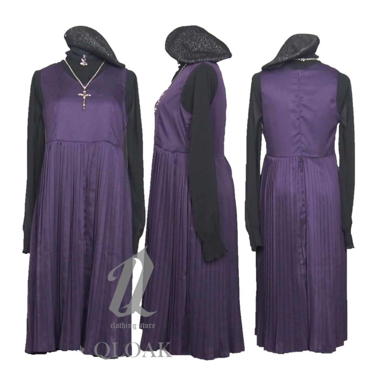 シンプル ノースリーブ プリーツ ワンピース qse110009 モノトーン ブラックコーデ 黒コーデ モード 系 ゴス ゴシック ゴスロリ パンク ロック V 系 原宿 個性的 drughoney ドラッグハニー drug honey